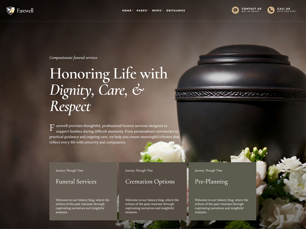 Farewell is a WordPress theme designed specifically for funeral homes, crematories, and memorial service providers who require a dignified, trustworthy, and professional online presence. Created with sensitivity and clarity in mind, Farewell helps businesses communicate essential information with calm authority and respect.